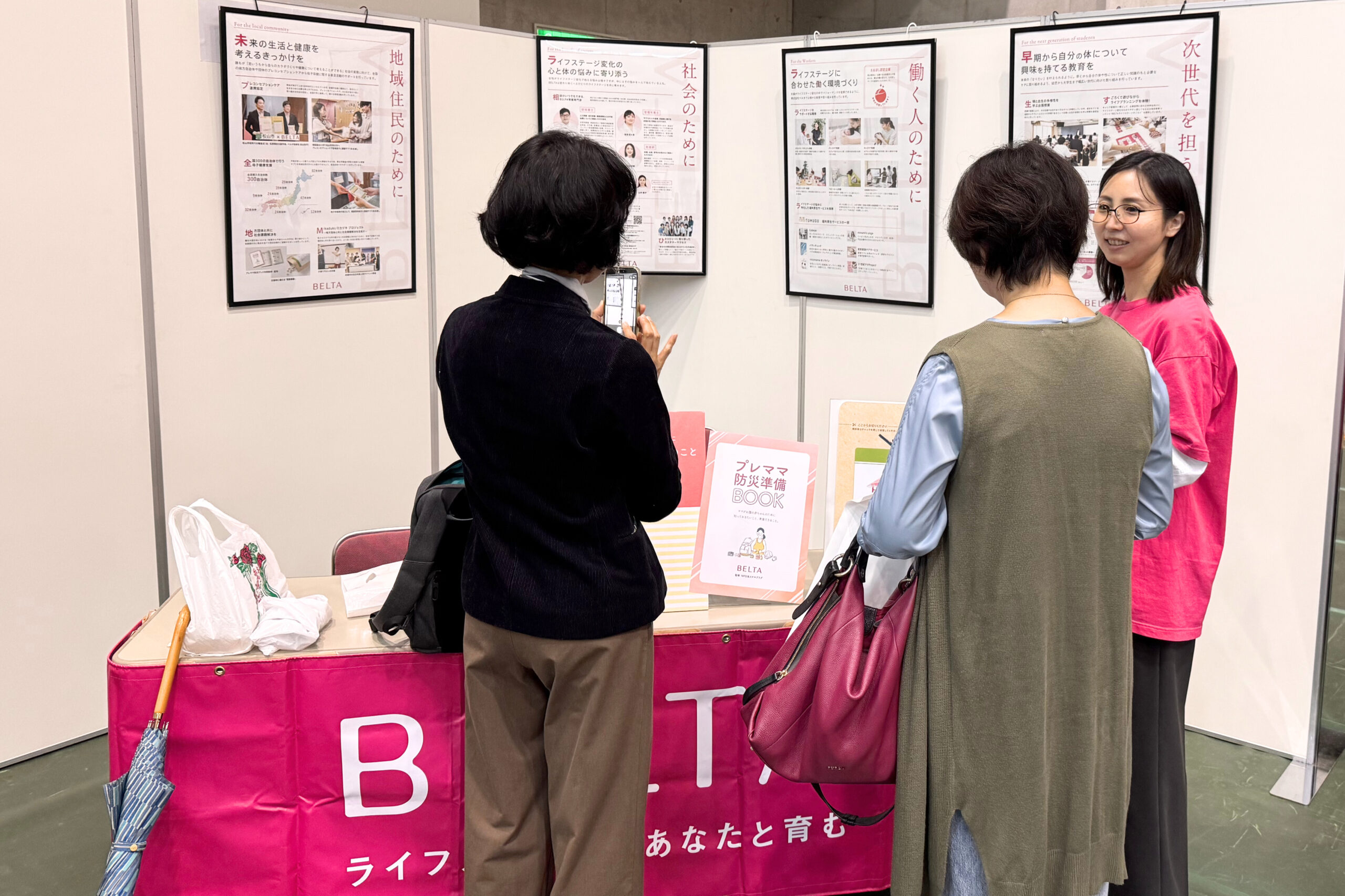 ベルタ葉酸サプリメントや、妊婦さん向けに作成した「プレママ防災準備ブック」は、来場された多くの方にご関心をお寄せいただきました。