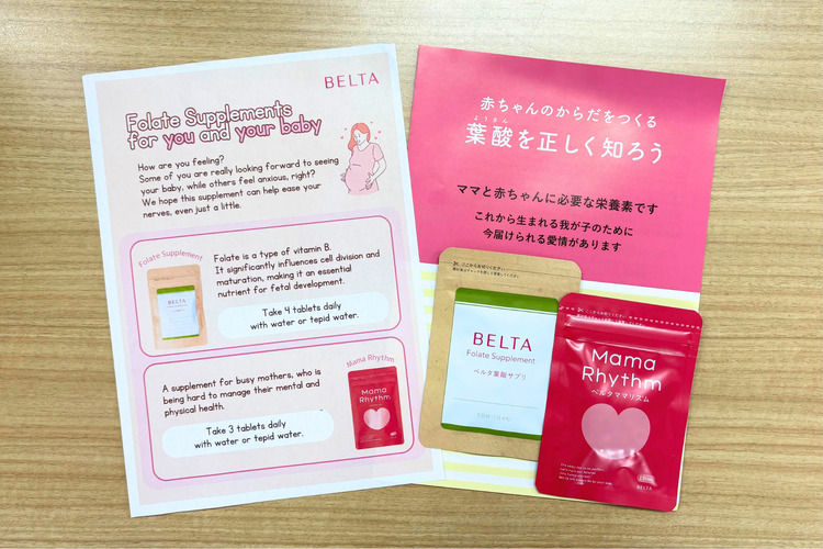 ベルタは、このワークショップに参加された妊婦の方々へ、お守りの想いを込めて、「ベルタ葉酸サプリ」と「ベルタママリズム」をお渡ししました。